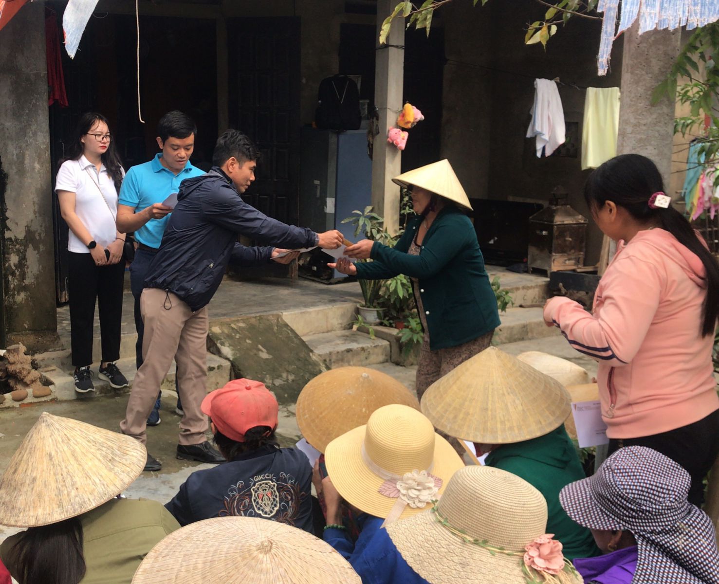 Head of VITEC delegation deputies, Mr Hoang Minh Dao hands over VND99 million were sent to 33 flood-hit residents in Quang Loc Commune, Quang Binh Province