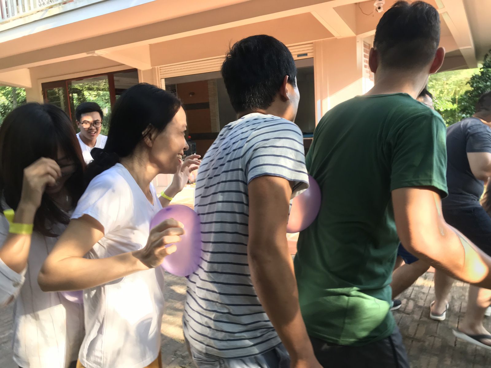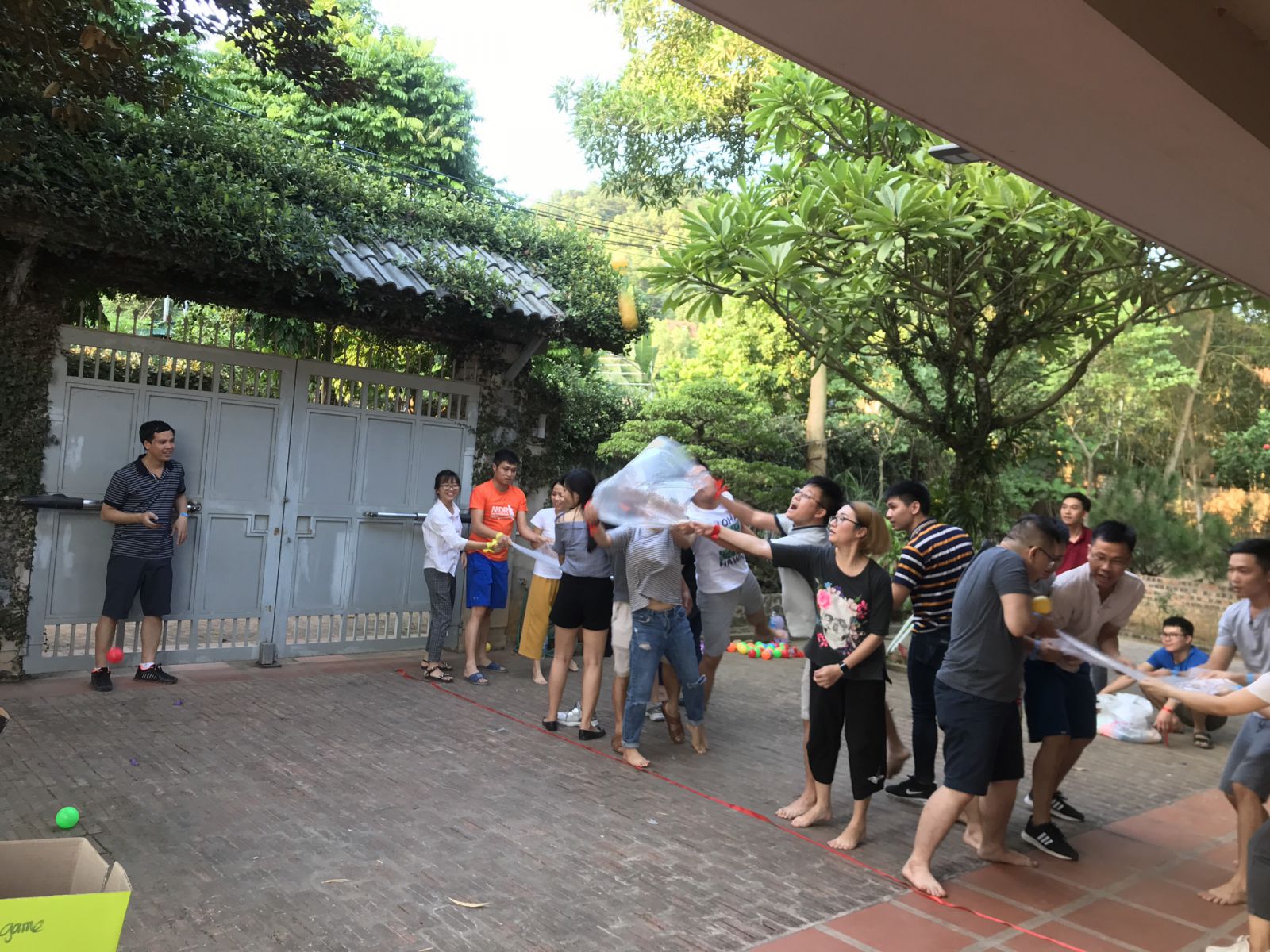 Team yellow play game: " balloon don’t fall "